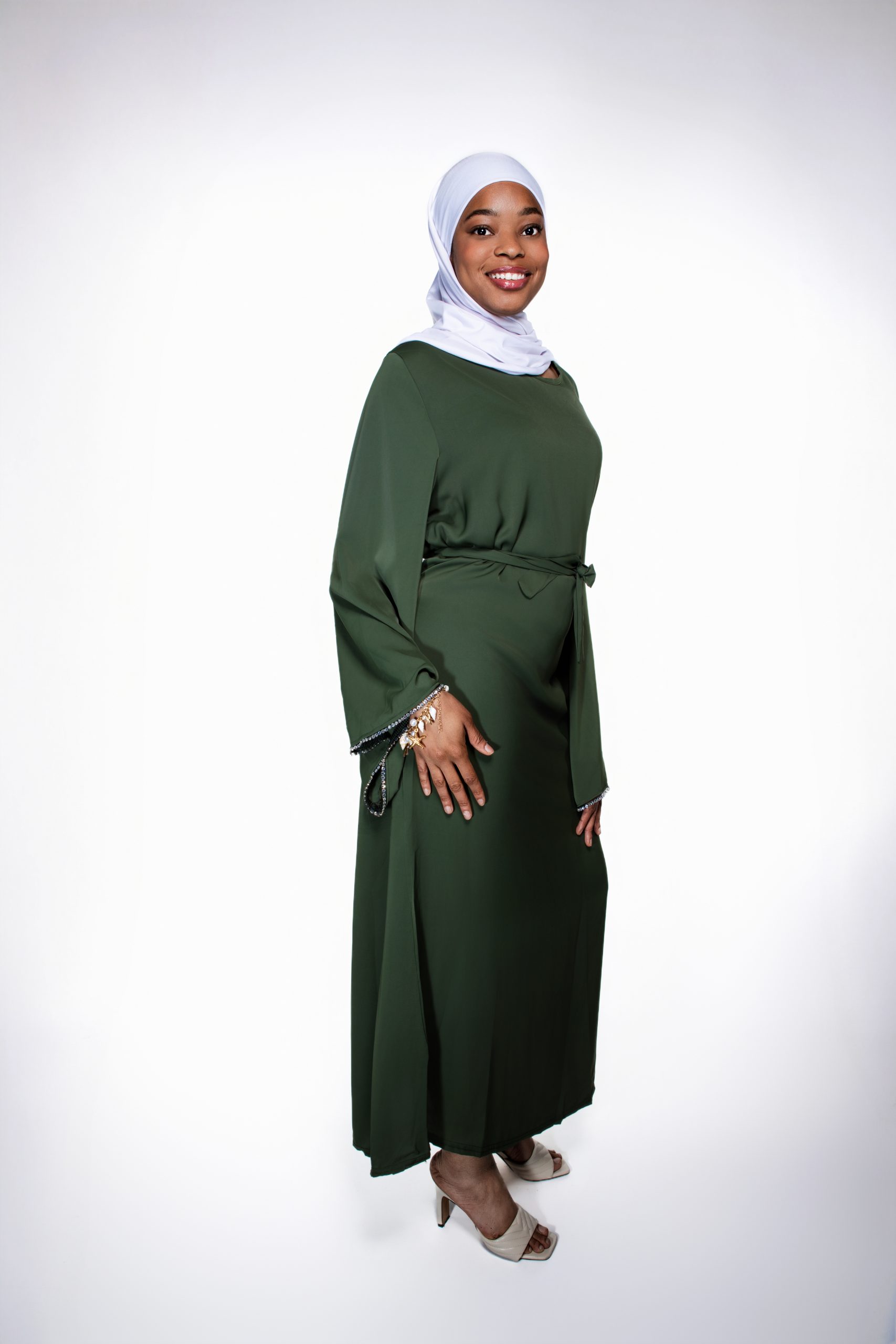 Robe élégante avec poignets pailletés et ceinture extérieure, parfaite pour sublimer votre silhouette avec une touche de brillance raffinée. Disponible en plusieurs couleurs.